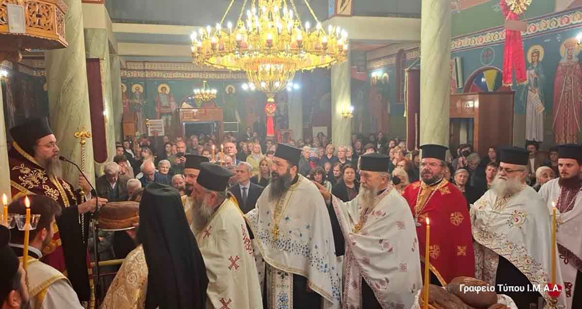 Το πρωί της Κυριακής 9 Νοεμβρίου 2025 ο Σεβασμιώτατος Ποιμενάρχης μας κ. Δαμασκηνός μετέβη στο Αιτωλικό, όπου στον πανηγυρίζοντα Ιερό Ναό του Αγίου Νεκταρίου χοροστάτησε στην Ακολουθία του Όρθρου και προεξήρχε στην πανηγυρική Θεία Λειτουργία.