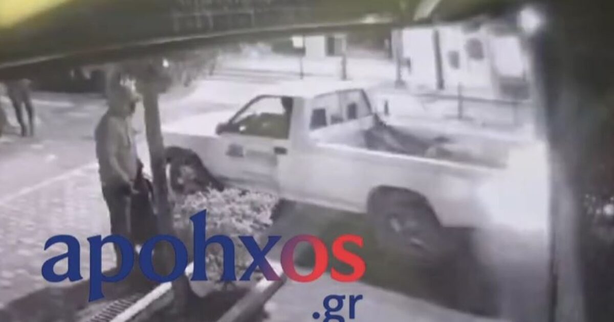 Η στιγμή που το αγροτικό πέφτει στο κοσμηματοπωλείο / apohxos.gr