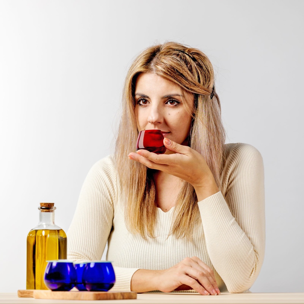 Κάποτε οι κριτές χρησιμοποιούσαν τα γνωστά μπλε ποτηράκια, ώστε να μην επηρεάζονται από το χρώμα του ελαιολάδου. Με τον καιρό όμως διαπιστώθηκε ότι το μπλε γυαλί αλλοίωνε την οπτική καθαρότητα. Έτσι υιοθετήθηκαν τα κόκκινα ποτήρια, ουδέτερα ως προς την αντίληψη του χρώματος, επιτρέποντας πιο αντικειμενική αξιολόγηση.