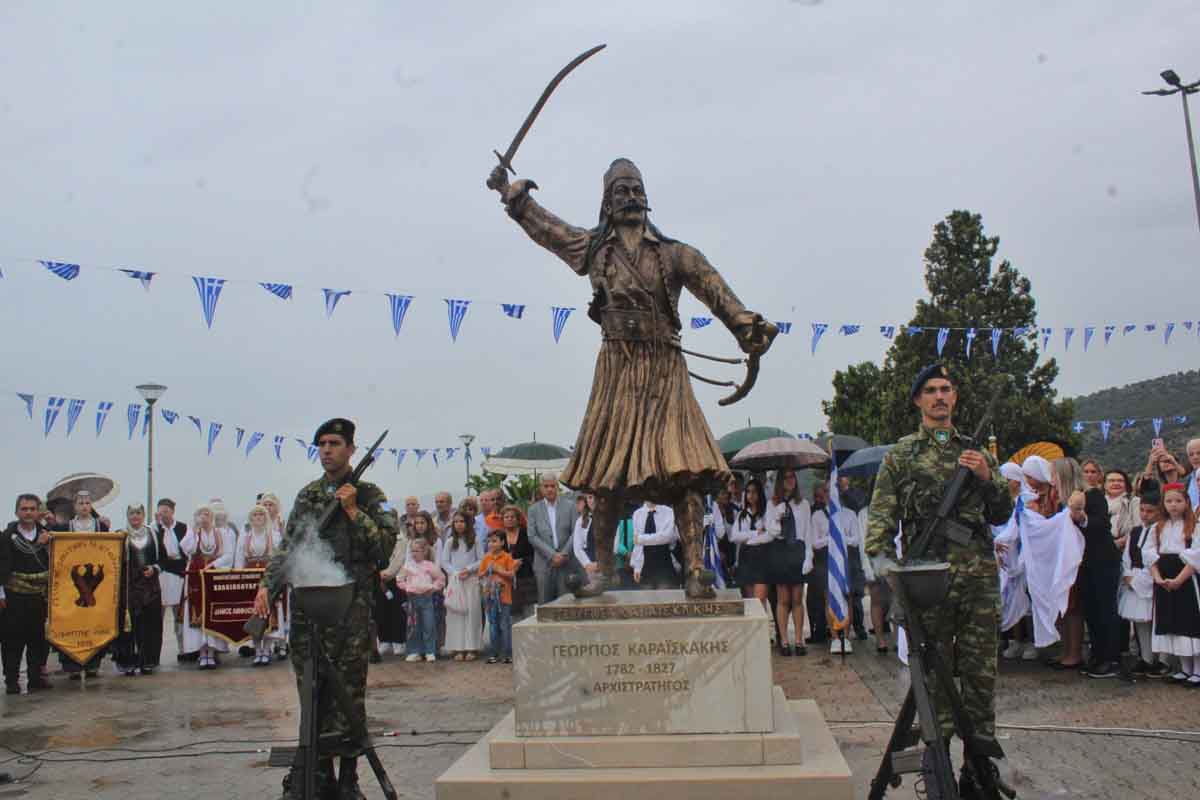 Στη συνέχεια ο Δήμαρχος Αμφιλοχίας στον χαιρετισμό του ανέφερε για το ιστορικό γεγονός: «Είναι μεγάλη μου τιμή και ξεχωριστή στιγμή στη ζωή μου να βρίσκομαι σήμερα ενώπιον μας, χαιρετίζοντας τις επετειακές εκδηλώσεις για τα 200 χρόνια από τη Μάχη του Καρβασαρά. Αναδεικνύοντας, για πρώτη φορά ως δημοτική αρχή, την ιστορική σημασία εκείνου του ιστορικού γεγονότος, ακριβώς 200 χρόνια από τότε που έλαβε χώρα. Και τιμώντας τον ρόλο όλων των βαλτινών αγωνιστών την επανάσταση του 1821, με πρώτο μεταξύ ίσων, τον επίσης βαλτινό από την πλευρά της μάνας του, το «γνησιώτερον προϊόν της Επαναστάσεως» κατά τον Παπαρρηγόπουλο, τον «Αχιλλέα της Ρωμιοσύνης» κατά τον Παλαμά, τον Γεώργιο Καραϊσκάκη. Στέκομαι με συγκίνηση σήμερα μπροστά στον ανδριάντα του. Είναι συγκλονιστική η δουλειά του γλύπτη μας, Ευάγγελου Τύμπα! Η πορεία του Καραϊσκάκη αποτυπώνει και με τον καλύτερο δυνατό τρόπο τον τρόπο σκέψης των χιλιάδων απλών προγόνων μας, οι οποίοι σήκωσαν στις πλάτες τους την Επανάσταση, κι ας μην έγιναν γνωστοί όπως αυτός. Ήταν ένας από αυτούς. Γεννημένος χωρίς κανένα προνόμιο, ικανός για το καλύτερο και το χειρότερο όπως έλεγε ο ίδιος, ανάλογα με το πώς θα αποφάσιζε να χρησιμοποιήσει την ευφυία ή πονηράδα του, διαβόητα αθυρόστομος, έζησε όλη τη μετάβαση του Έθνους από την πλήρη αναρχίαστα πρώτα ψήγματα οργάνωσης και από την συλλογική προσπάθεια στον Εμφύλιο, μέσα από κάθε στιγμή του σύντομου και απίστευτου βίου του. Μέσα από την πορεία του αντιλαμβάνεται κανείςπως για τις χιλιάδες των Ελλήνων εκείνης της εποχής, η Επανάσταση του 1821 ήταν κάτι πολύ παραπάνω από μία απόφαση να μιλήσουν τα όπλα για την ελευθερία. Ήταν ιστορική απόφαση εσωτερικής ρήξης με έναν τρόπο ζωής που σφυρηλατήθηκε μέσα από αιώνες και είχε καταστήσει de facto την οθωμανική κυριαρχία ως αναπόσπαστο στοιχείο της καθημερινότητας. Αυτή η μυθικών διαστάσεων απόφασή τους, ο αγώνας τους, μας επιτρέπουν σήμερα να μιλάμε για αυτούς ελεύθεροι. Τους οφείλουμε αιώνια ευγνωμοσύνη. Σκύβουμε ταπεινά το κεφάλι μπροστά στον Γιώργο Καραϊσκάκη μπροστά σε κάθε αγωνιστή του Βάλτου μπροστά σε κάθε Έλληνα και Ελληνίδα που έγραψαν με χρυσά γράμματα Ιστορία στον Καρβασαρά, στο Μεσολόγγι και σε κάθε γωνιά της επαναστατημένης Ελλάδας. Χρέος μας όχι μόνο η μνήμη. Αλλά και η μελέτη. Η διδαχή μας. Και η απόλυτη αφοσίωσή μας στην ελευθερία που μας κληρονόμησαν. Σας ευχαριστώ».