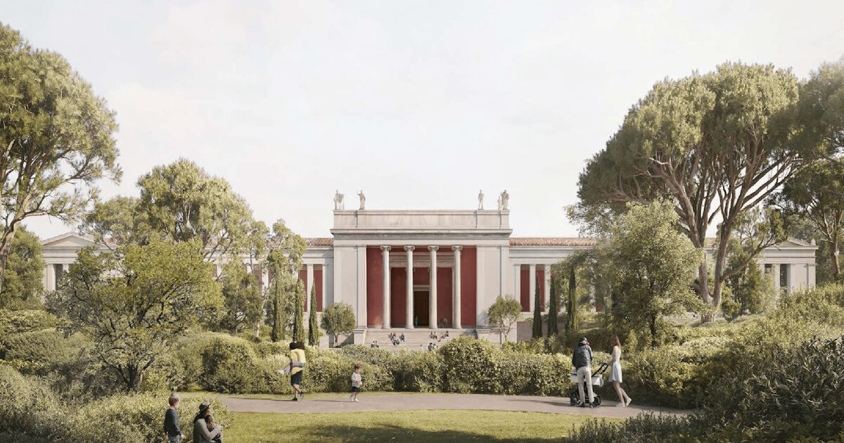Φωτορεαλιστική απεικόνιση του εξωτερικού χώρου του νέου Εθνικού Αρχαιολογικού Μουσείου