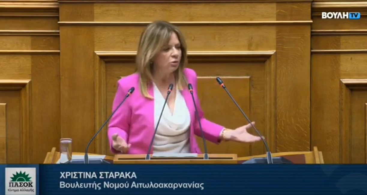 Στην ολομέλεια της Βουλής, κατά τη συζήτηση του νομοσχεδίου του Υπουργείου Εργασίας με τίτλο «Δίκαιη Εργασία για Όλους: Απλοποίηση της Νομοθεσίας – Στήριξη στον Εργαζόμενο – Προστασία στην Πράξη – Συνταξιοδοτικές ρυθμίσεις», τοποθετήθηκε η Βουλευτής Αιτωλοακαρνανίας του ΠΑΣΟΚ – Κινήματος Αλλαγής Χριστίνα Σταρακά, ασκώντας σκληρή κριτική στην κυβέρνηση για την πολιτική της στον χώρο της εργασίας.