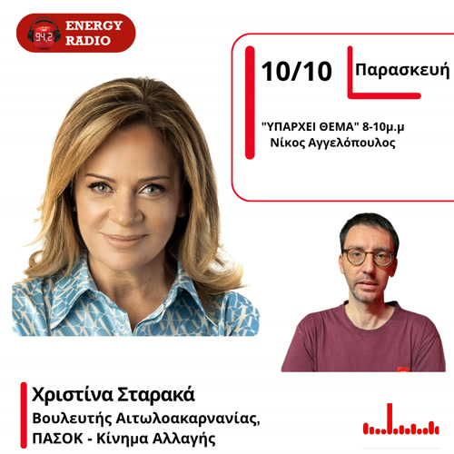 Για όλους και για όλα μίλησε στον Energy 94,2 και την εκπομπή «Υπάρχει Θέμα» με τον Νίκο Αγγελόπουλο, η βουλευτής Αιτωλοακαρνανίας του ΠΑΣΟΚ, Χριστίνα Σταρακά.