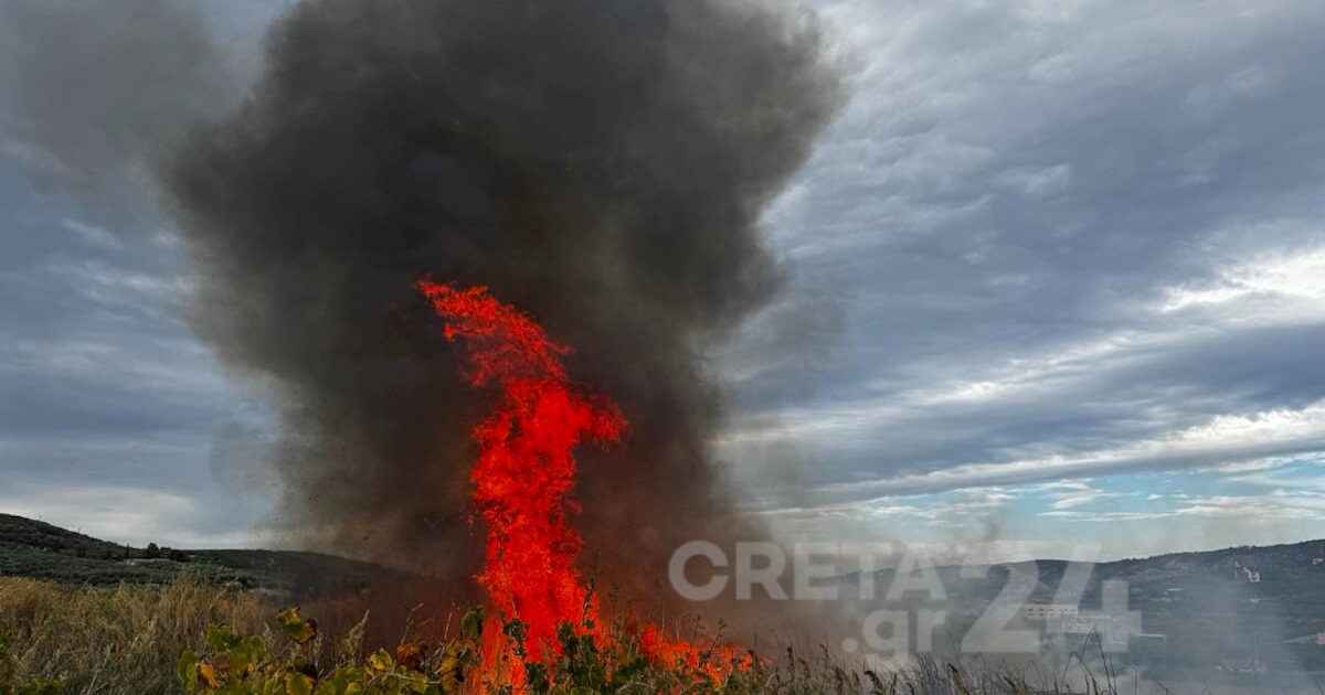 Η φωτιά στο Ηράκλειο καίει καλαμιώνες, δίπλα στον ποταμό Δρακουλιάρη και στο σημείο έσπευσαν άμεσα πυροσβεστικές δυνάμεις, οι οποίες ενισχύονται διαρκώς.