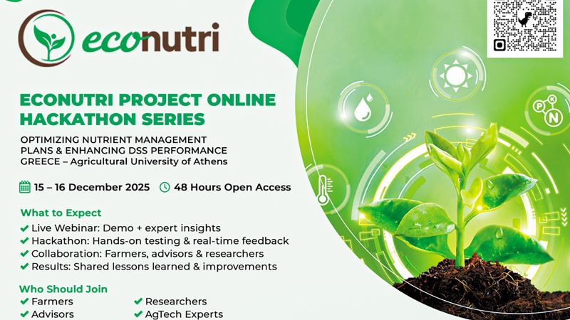Το Γεωπονικό Πανεπιστήμιο Αθηνών ανακοίνωσε τη διοργάνωση ενός καινοτόμου Hackathon στις 15 και 16 Δεκεμβρίου 2025, με στόχο την ενίσχυση των δεξιοτήτων νέων επιστημόνων και επαγγελματιών στις ψηφιακές τεχνολογίες που συμβάλλουν στη μείωση των εισροών και στην προστασία του περιβάλλοντος.