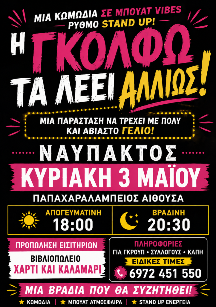 «Η Γκόλφω τα λέει αλλιώς» στη Ναύπακτο-Μια ξεκαρδιστική βραδιά που θα συζητηθεί!