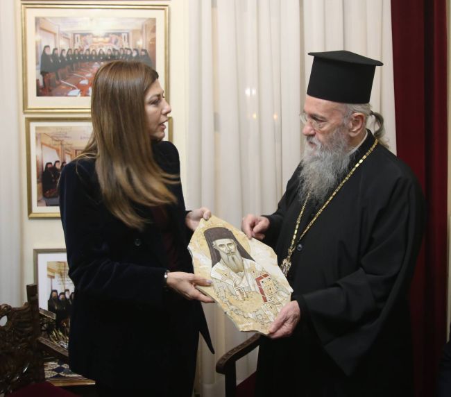 Τό ἀπόγευμα τοῦ Σαββάτου, 7 Φεβρουαρίου 2026, ὁ Μητροπολίτης Ναυπάκτου κ. Ἱερόθεος δέχθηκε ἐπίσκεψη ἀπό τήν Ὑπουργό Παιδείας, Θρησκευμάτων καί Ἀθλητισμοῦ, κ. Σοφία Ζαχαράκη, στά Γραφεῖα τῆς Ἱερᾶς Μητροπόλεως. Ἡ κ. Ζαχαράκη βρέθηκε στήν Ναύπακτο μέ ἀφορμή τήν κοπή τῆς πρωτοχρονιάτικης πίτας τῆς ΔΗΜΤΟ Νέας Δημοκρατίας Ναυπακτίας. Τήν Ὑπουργό συνόδευαν ὁ Βουλευτής Αἰτωλοακαρνανίας κ. Θανάσης Παπαθανάσης, ὁ Πρόεδρος τοῦ Περιφερειακοῦ Συμβουλίου Δυτικῆς Ἑλλάδος κ. Χρῆστος Παΐσιος, ὁ Πρόεδρος τῆς ΔΕΕΠ ΝΔ Αἰτωλοακαρνανίας κ. Νικηφόρος Μακός καί συνεργάτες τῆς Ὑπουργοῦ.