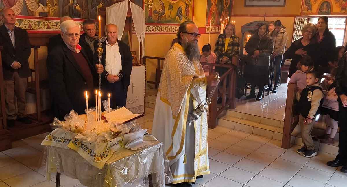 Παρά τις φθινοπωρινές καιρικές συνθήκες (συννεφιά, ψιλόβροχο και σχετικά χαμηλή ορατότητα λόγω ομίχλης), πολύς κόσμος παρευρέθηκε στην πανηγυρική Θεία Λειτουργία μετά αρτοκλασίας στον Ιερό Ναό μας.