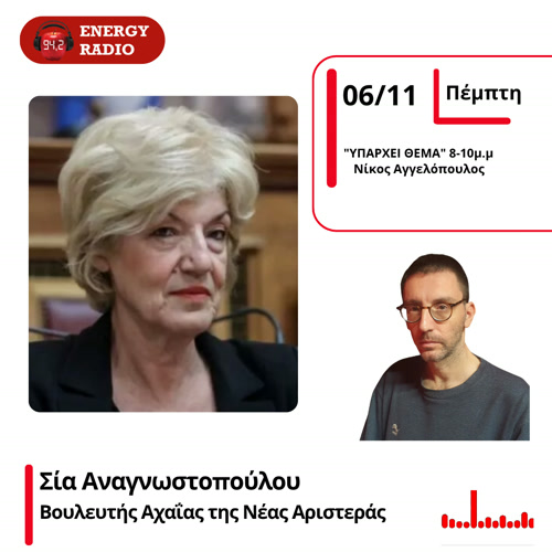 Για το θέμα τοποθετήθηκε αναλυτικά στον energy 94,2 η Βουλευτής Αχαΐας της Νέας Αριστεράς, Σία Αναγνωστοπούλου.