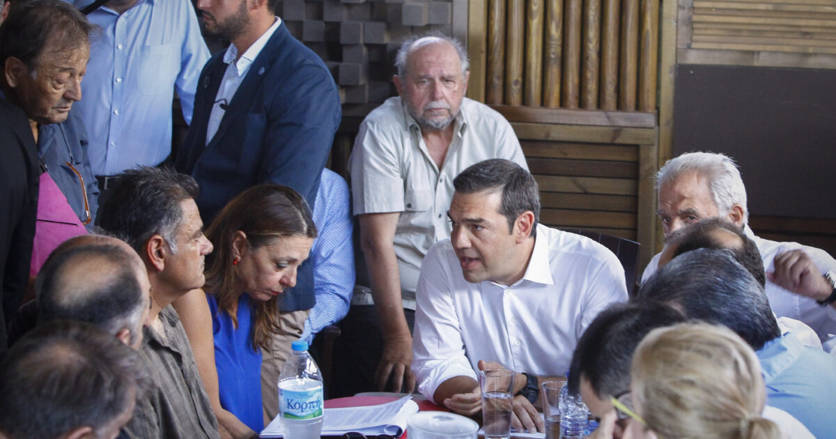 Ο Αλέξης Τσίπρας με κατοίκους στο Μάτι στις 4 Σεπτεμβρίου 2018 /