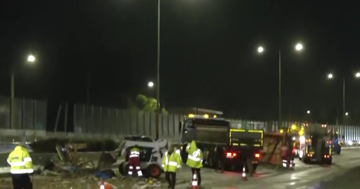 Τα μπάζα που έπεσαν ωστόσο από το φορτηγό, εκτοξεύτηκαν και στις άλλες λωρίδες με αποτέλεσμα και οι 3 να κλείσουν προσωρινά.