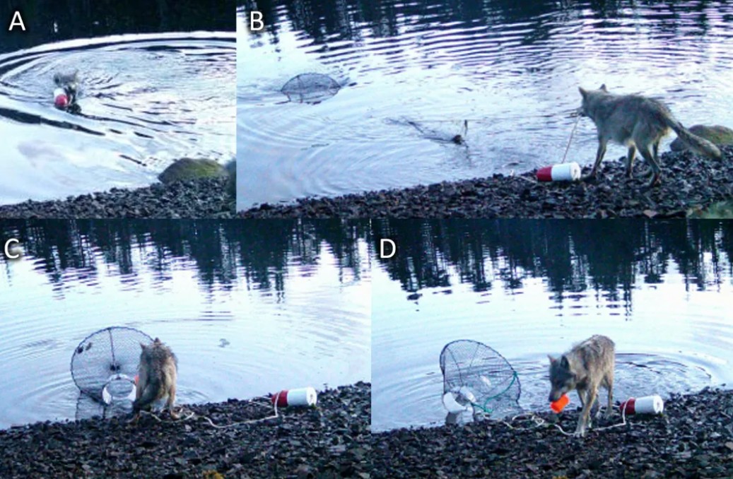Μια λύκαινα, η οποία εθεάθη στο δυτικό Καναδά να ανεβάζει στην επιφάνεια του νερού μια παγίδα για κάβουρες για να τραφεί, άφησε έκπληκτους τους ερευνητές, οι οποίοι κατέγραψαν αυτή τη συμπεριφορά σε βίντεο.
