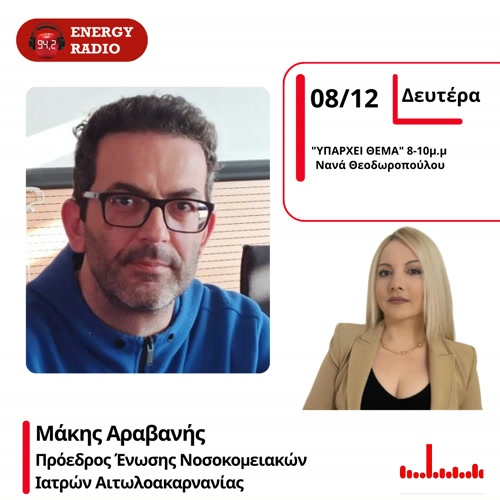 Για την «ακατανόητη απόφαση» της 6ης ΥΠΕ να μετακινήσει και τρίτο μόνιμο γιατρό, όπως καταγγέλλουν οι Νοσοκομειακοί Γιατροί Αιτωλοακαρνανίας, από την ΜΕΘ του Νοσοκομείου Αγρινίου αυτή τη φορά έναν εντατικολόγο με προορισμό τη Ζάκυνθο, μίλησε ο πρόεδρος του Συλλόγου Μάκης Αραβανής, το πρωί της Δευτέρας 8/12, στο ραδιόφωνο του Energy 94,2 και την εκπομπή της Νανάς Θεοδωροπούλου «Υπάρχει Θέμα».