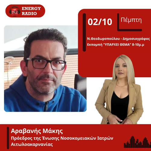 Κώδωνα του κινδύνου να κλείσουν τμήματα στα νοσοκομεία της Αιτωλοακαρνανίας-και ευρύτερα της χώρας- έκρουσε ο Μάκης Αραβανής, πρόεδρος των Νοσοκομειακών Γιατρών Αιτωλοακαρνανίας, μιλώντας σε συνέντευξή του στην δημοσιογράφο Νανά Θεοδωροπούλου, στην εκπομπή «Υπάρχει Θέμα» στον Energy 94,2
