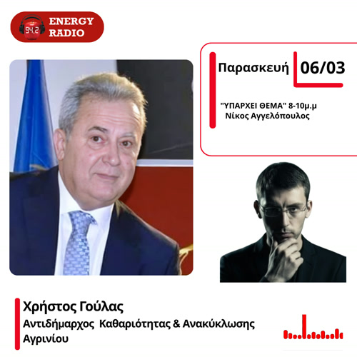 Τα παραπάνω στοιχεία ανέλυσε μιλώντας στον energy 94,2 και τον Νίκο Αγγελόπουλο, ο αντιδήμαρχος Καθαριότητας & Ανακύκλωσης του Δήμου Αγρινίου, Χρήστος Γούλας.