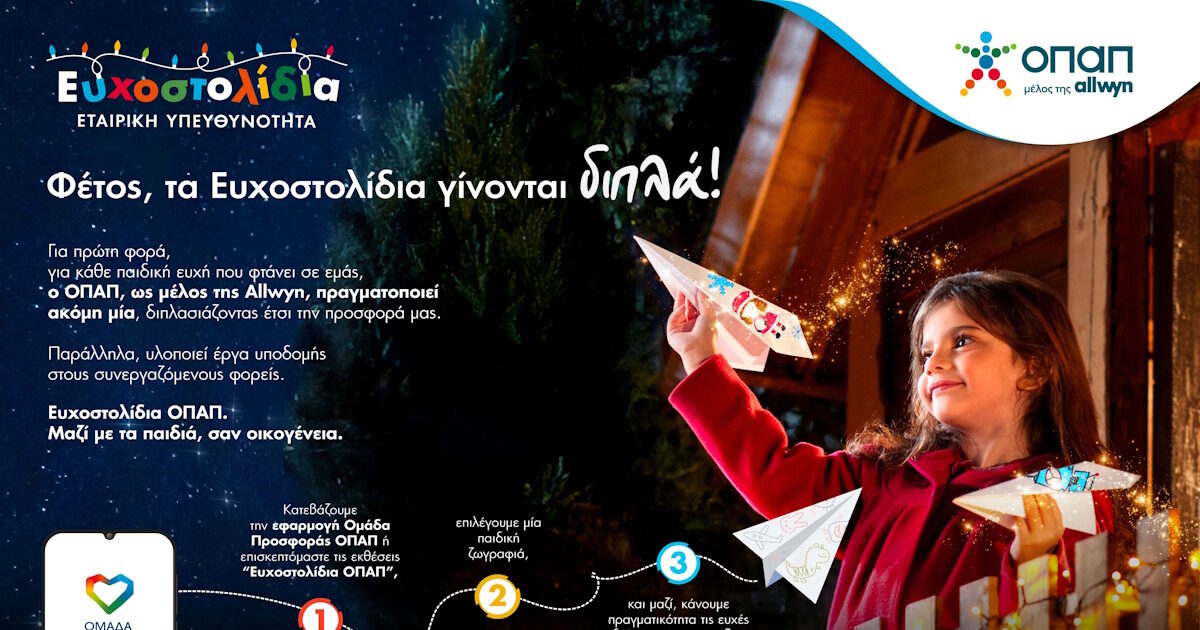 Για πρώτη φορά, ο ΟΠΑΠ – μέλος της Allwyn – ενισχύει ακόμη περισσότερο τη δράση προσφοράς. Για κάθε ευχή που πραγματοποιείται, ο ΟΠΑΠ υλοποιεί μία ακόμη, διπλασιάζοντας με αυτό τον τρόπο τον αντίκτυπο και την αξία της πρωτοβουλίας.