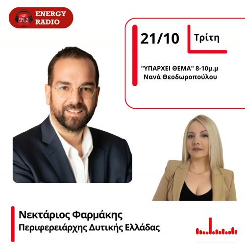 Την μεγάλη σημασία που δίνει η Περιφέρεια Δυτικής Ελλάδας στην δημόσια εκπαίδευση τόνισε την Τρίτη 21/10 ο Περιφερειάρχης Νεκτάριος Φαρμάκης, μιλώντας σε συνέντευξή του στην δημοσιογράφο Νανά Θεοδωροπούλου, στην εκπομπή «Υπάρχει Θέμα» στον Energy 94,2.