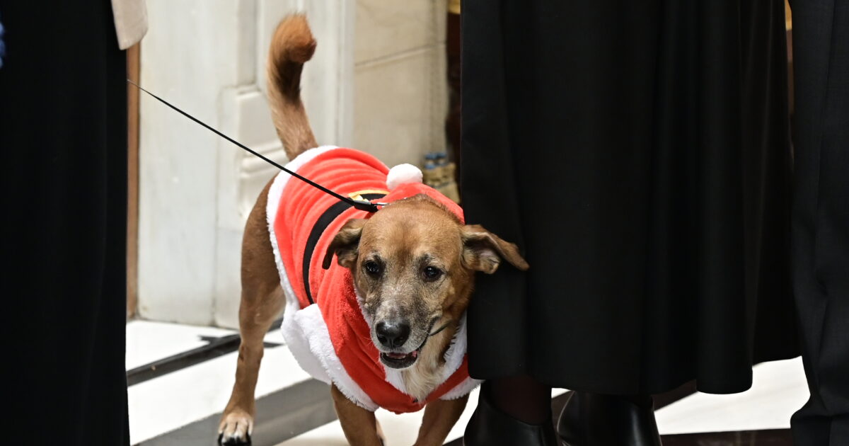Ο Peanut μπήκε σε mood Χριστουγέννων: Ντυμένος ως Αϊ Βασίλης άκουσε τα κάλαντα στο Μέγαρο Μαξίμου