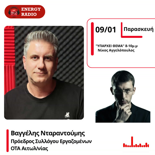 Ο πρόεδρος του Συλλόγου ΟΤΑ Εργαζομένων Αιτ/νίας, Βαγγέλης Νταραντούμης στον Energy 94.2
