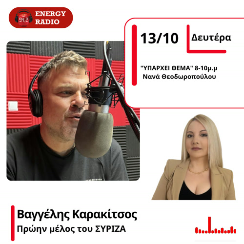 Προτεραιότητα στην ανάγκη συνεννόησης των προοδευτικών δυνάμεων, της Κεντροαριστεράς προκρίνει o Βαγγέλης Καρακίτσος, πρώην μέλος του ΣΥΡΙΖΑ ο οποίος μίλησε στην εκπομπή “Υπάρχει Θέμα” με τη δημοσιογράφο Νανά Θεοδωροπούλου στον Energy 94.2
