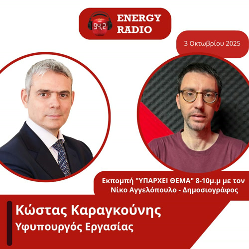 Στο θέμα αναφέρθηκε εκτενώς μιλώντας στον Energy 94,2 και την εκπομπή «Υπάρχει Θέμα» ο Υφυπουργός Εργασίας Κώστας Καραγκούνης, δίνοντας στοιχεία και για την μείωση των ποσοστών της ανεργίας στη χώρα μας.