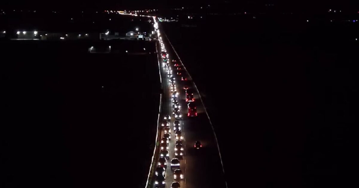 Εκεί, σύμφωνα με το ρεπορτάζ, έχει σχηματιστεί ένα γιγαντιαίο μποτιλιάρισμα που αγγίζει τα 12 χιλιόμετρα.