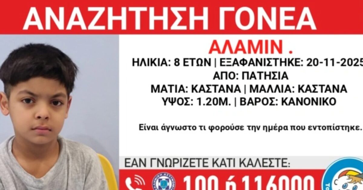 Συναγερμός στα Πατήσια σήμανε το βράδυ της Πέμπτης (20.11.2025) καθώς βρέθηκε ένα παιδί μόλις 8 χρόνων να περπατά μόνο του. Οι αρχές αναζητούν τους γονείς του ενώ το «Χαμόγελο του Παιδιού» έβγαλε δελτίο ώστε όσοι έχουν πληροφορίες για την οικογένεια του ανήλικου να καλέσουν τις αρχές.