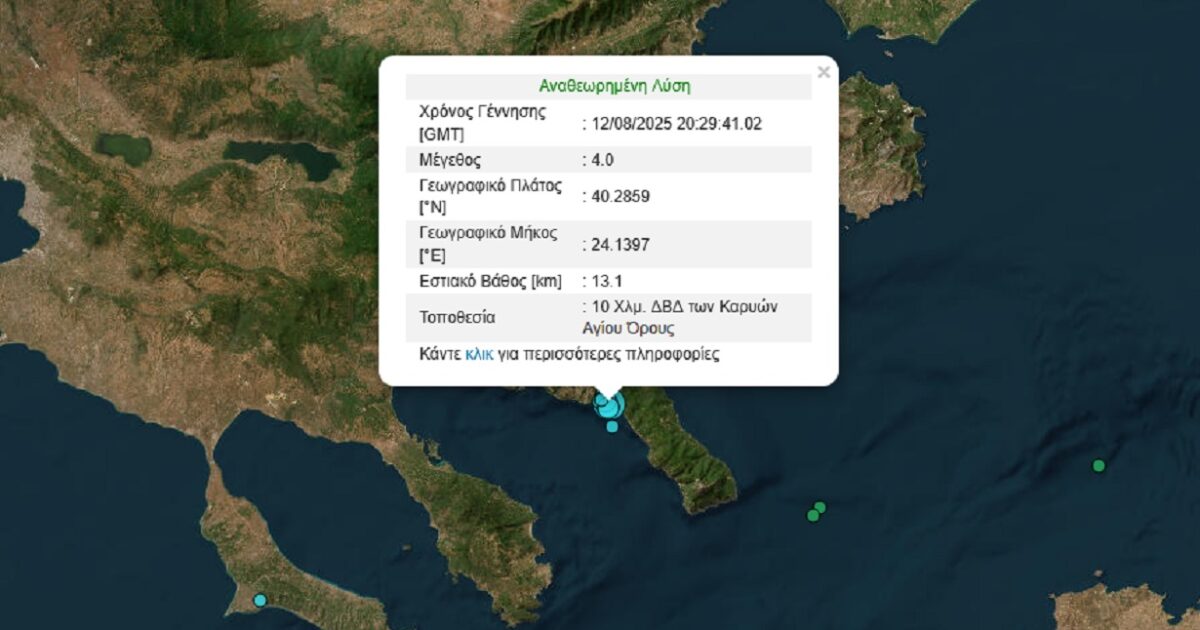 Σεισμός 4 Ρίχτερ στο Άγιο Όρος σε χαμηλό εστιακό βάθος