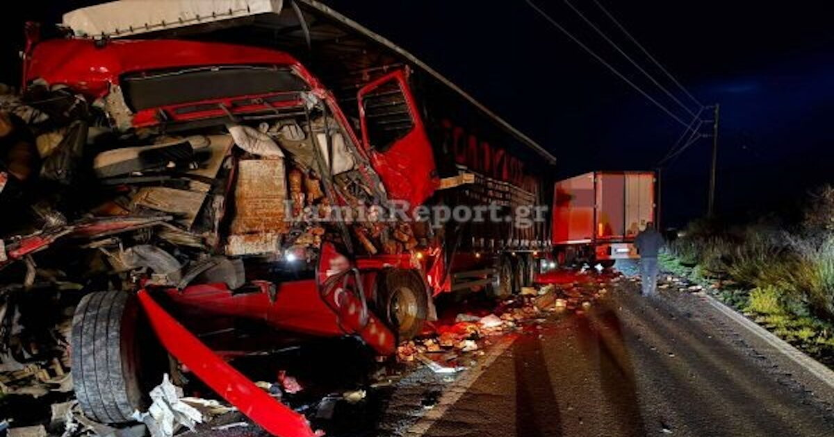 Σοκαριστικό τροχαίο έξω απο την Αμφίκλεια: Μετωπική σύγκρουση δύο φορτηγών – Παρέσυραν και αυτοκίνητο