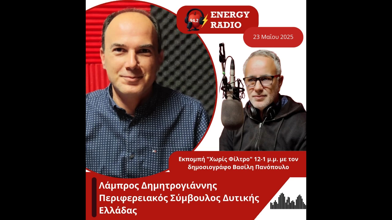 Συνέντευξη Περιφερειακού Συμβούλου Δυτικής Ελλάδας Λάμπρου Δημητρογιάννη στον Energy 94.2