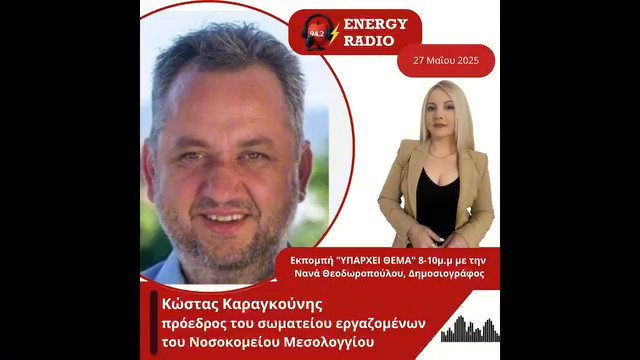Ο Κώστας Καραγκούνης, πρόεδρος του σωματείου εργαζομένων του Νοσοκομείου Μεσολογγίου σε συνέντευξή του στην δημοσιογράφο Νανά Θεοδωροπούλου, στην εκπομπή «ΥΠΑΡΧΕΙ ΘΕΜΑ» στον Energy 94.2 αναφέρθηκε στα μεγάλα προβλήματα υποστελέχωσης της Νοσηλευτικής Μονάδας. Επίσης κληθείς να σχολιάσει την επιλογή διοικήσεων ανέφερε ότι θα πρέπει οι θέσεις αυτές να επανδρώνονται από ανθρώπους που γνωρίζουν τον χώρο της υγείας.