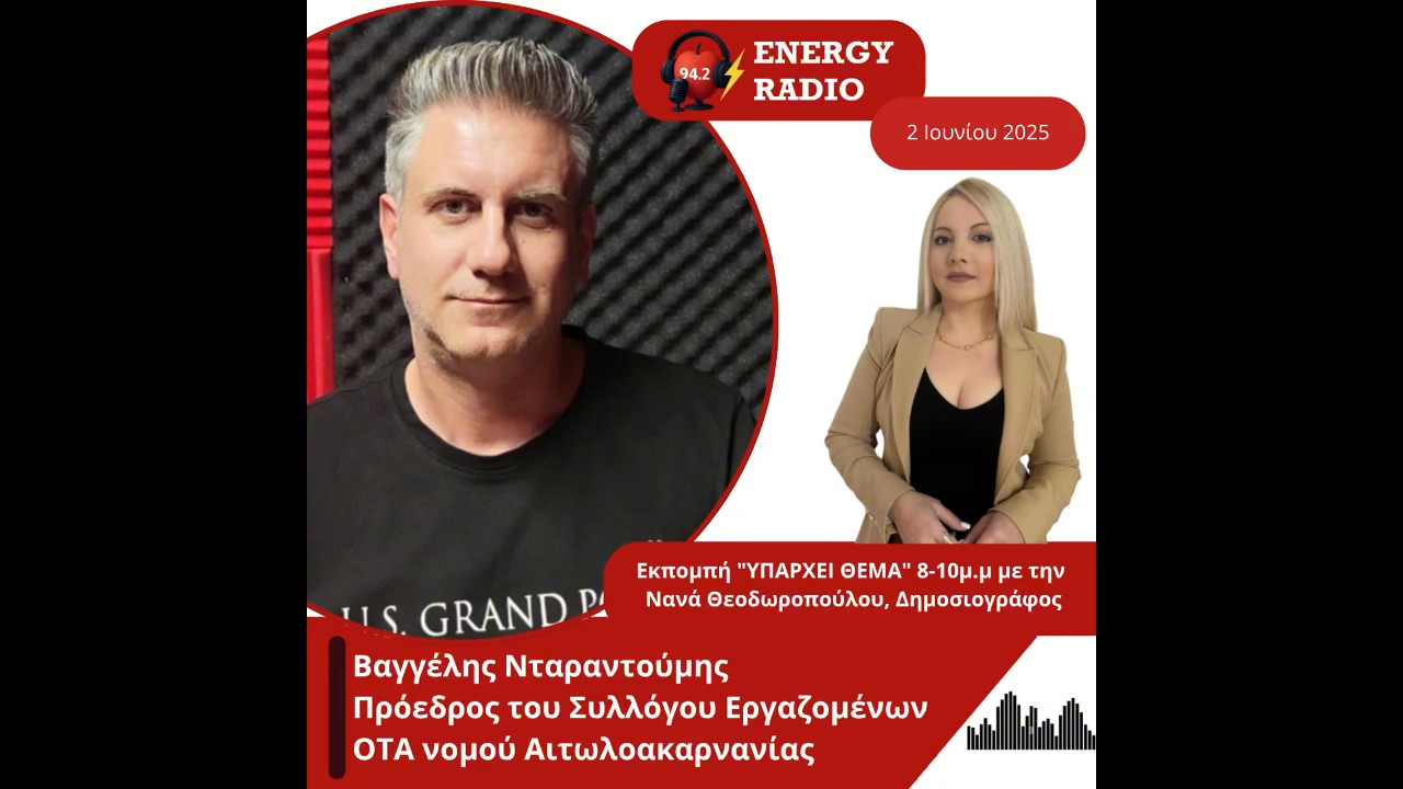 Συνέντευξη Προέδρου Συλλόγου Εργαζομένων ΟΤΑ νομού Αιτωλοακαρνανίας Βαγγέλη Νταραντούμη στον Energy 94.2