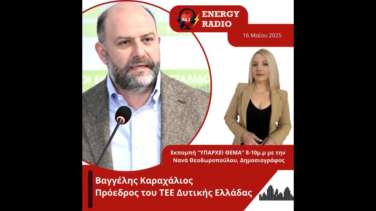 Ο πρόεδρος του ΤΕΕ Δυτικής Ελλάδας, Βαγγέλης Καραχάλιος σε συνέντευξή του στην δημοσιογράφο Νανά Θεοδωροπούλου, στην εκπομπή «ΥΠΑΡΧΕΙ ΘΕΜΑ» στον Energy 94.2 αναφέρθηκε στο μείζον ζήτημα που αφορά την οριοθέτηση των οικισμών καθώς και στο νέο Οικοδομικό Κανονισμό και στις πρωτοβουλίες που θα αναλάβει το ΤΕΕ Δυτικής Ελλάδας.