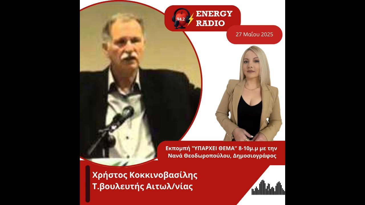 Ο Χρήστος Κοκκινοβασίλης, τέως βουλευτής Αιτωλ/νίας σε ενδιαφέρουσα συνέντευξή του στην δημοσιογράφο Νανά Θεοδωροπούλου, στην εκπομπή «ΥΠΑΡΧΕΙ ΘΕΜΑ» στον Energy 94.2 αναφέρθηκε στην απώλεια του ιστορικού στελέχους Χρήστου Ροκόφυλλου καθώς και στις ενέργειες στην κατεύθυνση της σύγκλισης των «προοδευτικών» δυνάμεων.