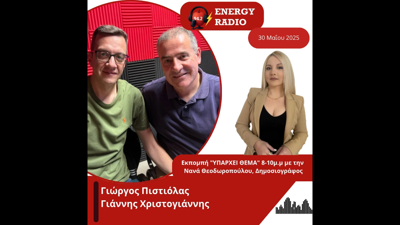 Ο Γιώργος Πιστιόλας και ο Γιάννης Χριστογιάννης, αστυνομικοί και μέλη της ερασιτεχνικής θεατρικής ομάδα ΘΕΑΤΡόPolice της Ένωσης Αστυνομικών Υπαλλήλων Ακαρνανίας και της Τοπικής Διοίκησης Ακαρνανίας της Διεθνούς Ένωσης Αστυνομικών σε συνέντευξή τους στην δημοσιογράφο Νανά Θεοδωροπούλου, στην εκπομπή «ΥΠΑΡΧΕΙ ΘΕΜΑ» στον Energy 94,2 μίλησαν για την συνεργασία τους για ενδέκατη συνεχόμενη χρονιά με το ΔΗΠΕΘΕ παρουσιάζοντας τη Μουσικοθεατρική παράσταση με τίτλο: «ΛΙΡΑ… 100» σε σκηνοθεσία της Γιούλης Μαρούση. Η παράσταση θα ανέβει στην αίθουσα του Δη.Πε.Θε.Αγρινίου την Παρασκευή 30 & το Σάββατο 31 Μαΐου και την Κυριακή 01 Ιουνίου στις 9.15 το βράδυ.