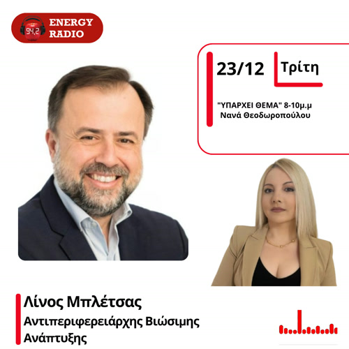 Συνέντευξη του Αντιπεριφερειάρχη Βιώσιμης Ανάπτυξης Λ. Μπλέτσα στον Energy 94.2