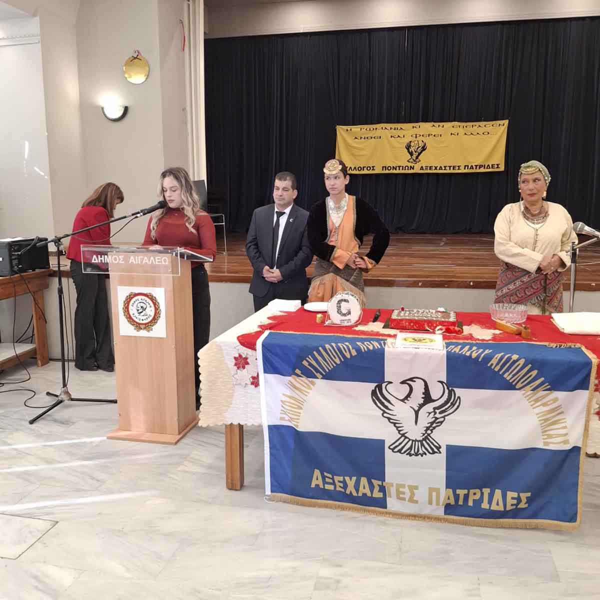 Η εκδήλωση που πραγματοποιήθηκε την Κυριακή 25 Ιανουαρίου στο Πολιτιστικό Κέντρο «Γιάννης Ρίτσος» στο Αιγάλεω, άνοιξε με τα ποντιακά κάλαντα της Πρωτοχρονιάς, τα οποία έψαλαν τα παιδιά του χορευτικού τμήματος του Συλλόγου, μεταφέροντας σε όλους το πνεύμα του Νεόχρονου όπως τον καλωσόριζαν οι Έλληνες του Πόντου. Στη λύρα, τους συνόδευσε ο Κωνσταντίνος Ορφανίδης, δίνοντας τον αυθεντικό ήχο της ποντιακής παράδοσης.