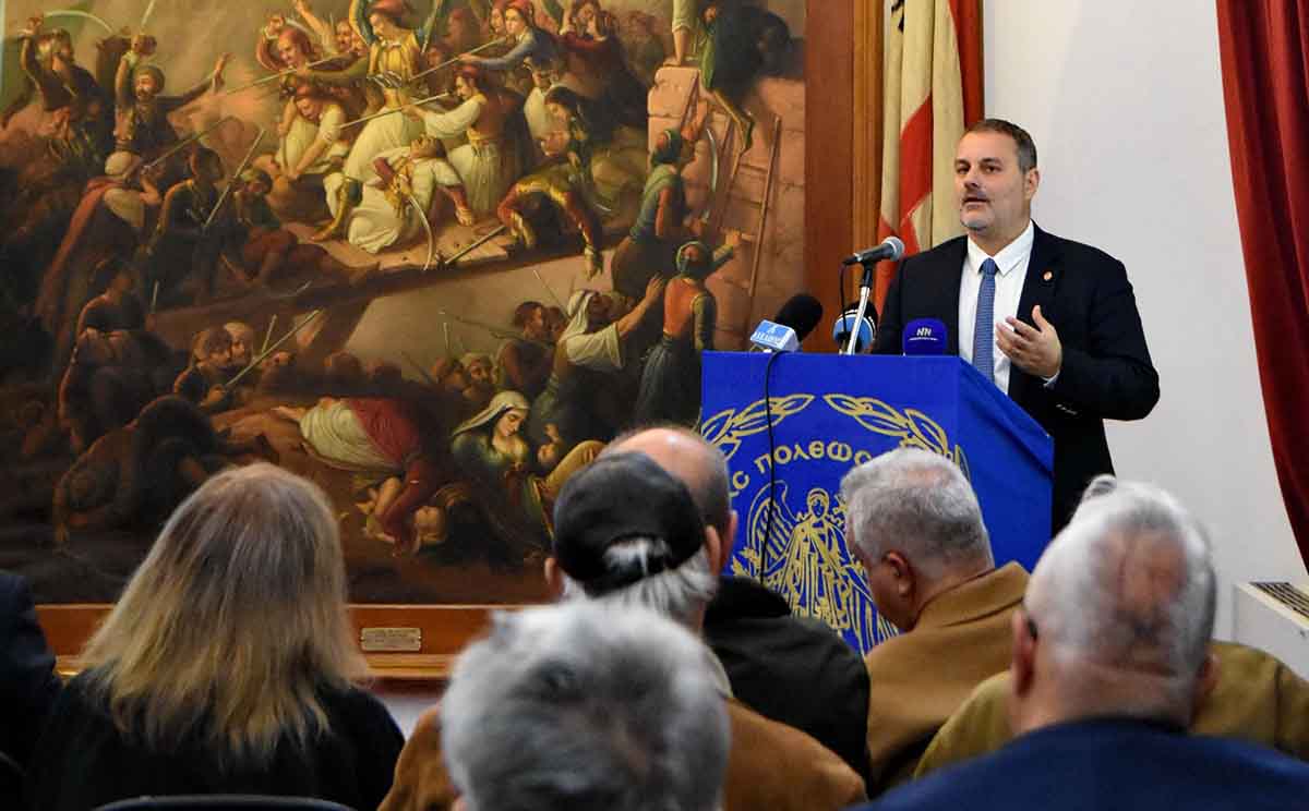 Στον κεντρικό χώρο του Μουσείου Ιστορίας & Τέχνης, μπροστά από την εμβληματική Εικόνα της Εξόδου, ο Δήμαρχος, Σπυρίδων Διαμαντόπουλος, παρουσίασε το συνολικό πλαίσιο των επετειακών δράσεων που έχουν διοργανωθεί και θα πραγματοποιηθούν καθ’ όλη τη διάρκεια του 2026.