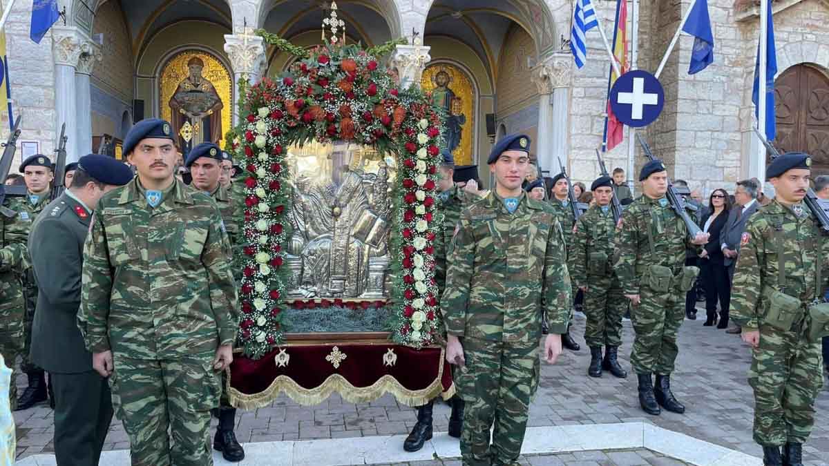 • Ὧρα 10:45 π.μ. – Ἔναρξη Λιτανεύσεως Ἱερᾶς Εἰκόνος μὲ τὴν συμμετοχὴ τῶν Φιλαρμονικῶν τῆς Ἱ. Π. Μεσολογγίου, Στρατιωτικοῦ Ἀγρήματος, Πολιτιστικῶν Φορέων, Σημαιοφόρων καὶ Παραστατῶν τῶν Σχολείων τῆς Ἱ. Π. Μεσολογγίου