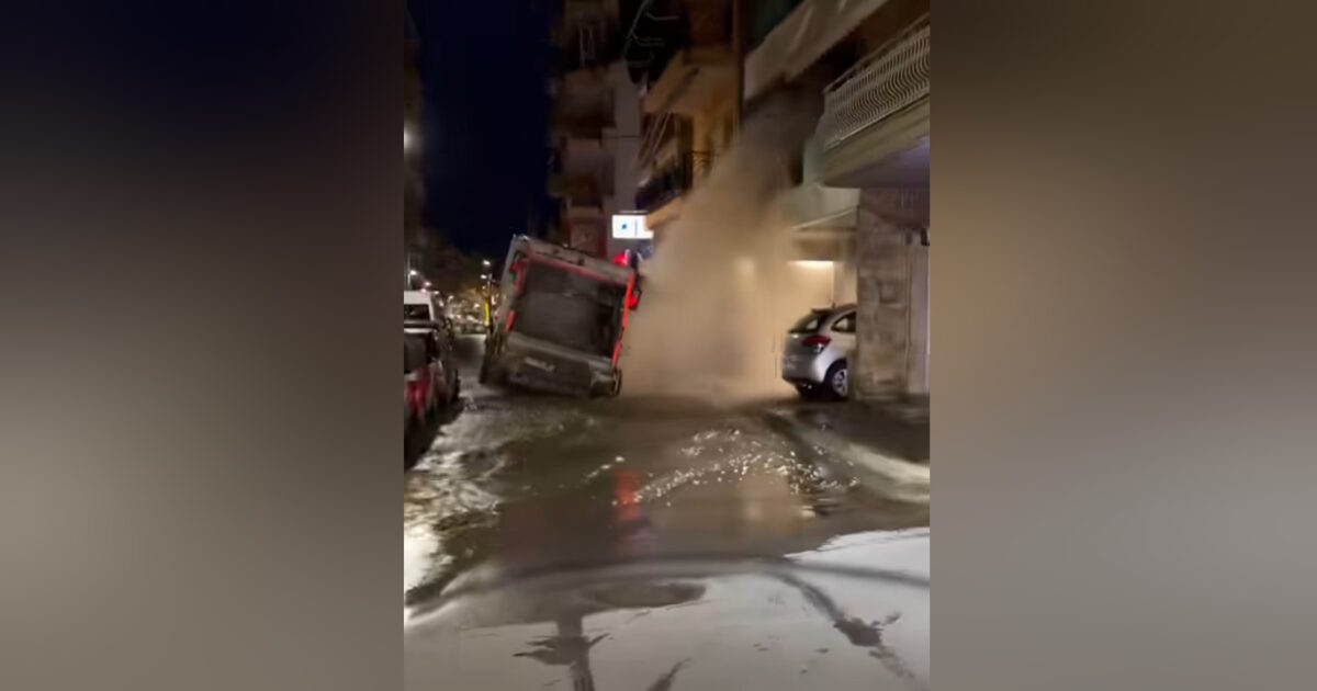 Ξάνθη: Απορριμματοφόρο έπεσε σε λακκούβα, έσπασε αγωγό νερού και πλημμύρισε διπλανή πολυκατοικία